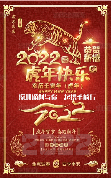 首先感謝大家在牛年給予我公司的鼎力支持。在2022年春節即將來臨之際,深圳市涌創興盛科技有限公司全體員工恭祝大家新春愉快,合家歡樂,萬事如意,虎年吉祥、虎慮生威!