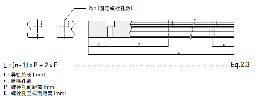 HIWIN直線導軌備有導軌標準長度庫存供應客戶需求。若客戶訂購非標準長度導軌時,端面距離E的尺寸最好不要大于1/2P,防止因E的尺寸過大導致導軌裝配后端部的不穩定,而降低直線導軌的精度。