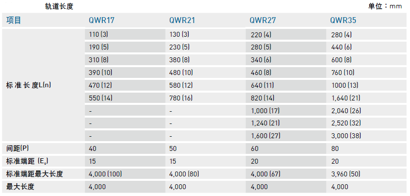 2. 標準端距最大長度是指左、右端距皆為標準端距之導軌最大長度。